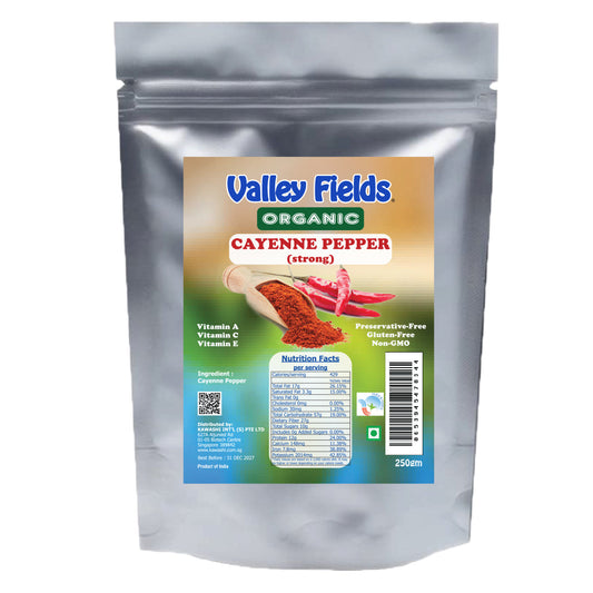 Valley Fields Organic Cayenne Pepper 100g, 250g, 500g, 1kg